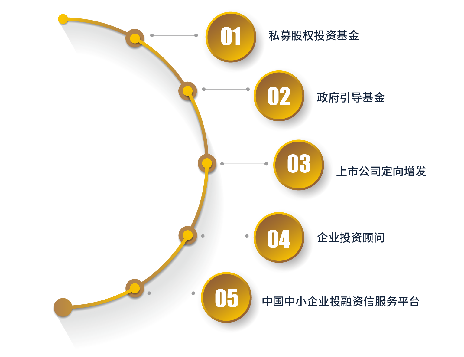 公司汇集了顶尖的投资团队,以专业和敏锐的投资眼光构建优质投资组合。目前,公司拥有私募股权投资、政府产业引导基金、上市公司定增、金融顾问及中国中小企业协会投融资信息服务平台等几大核心业务。